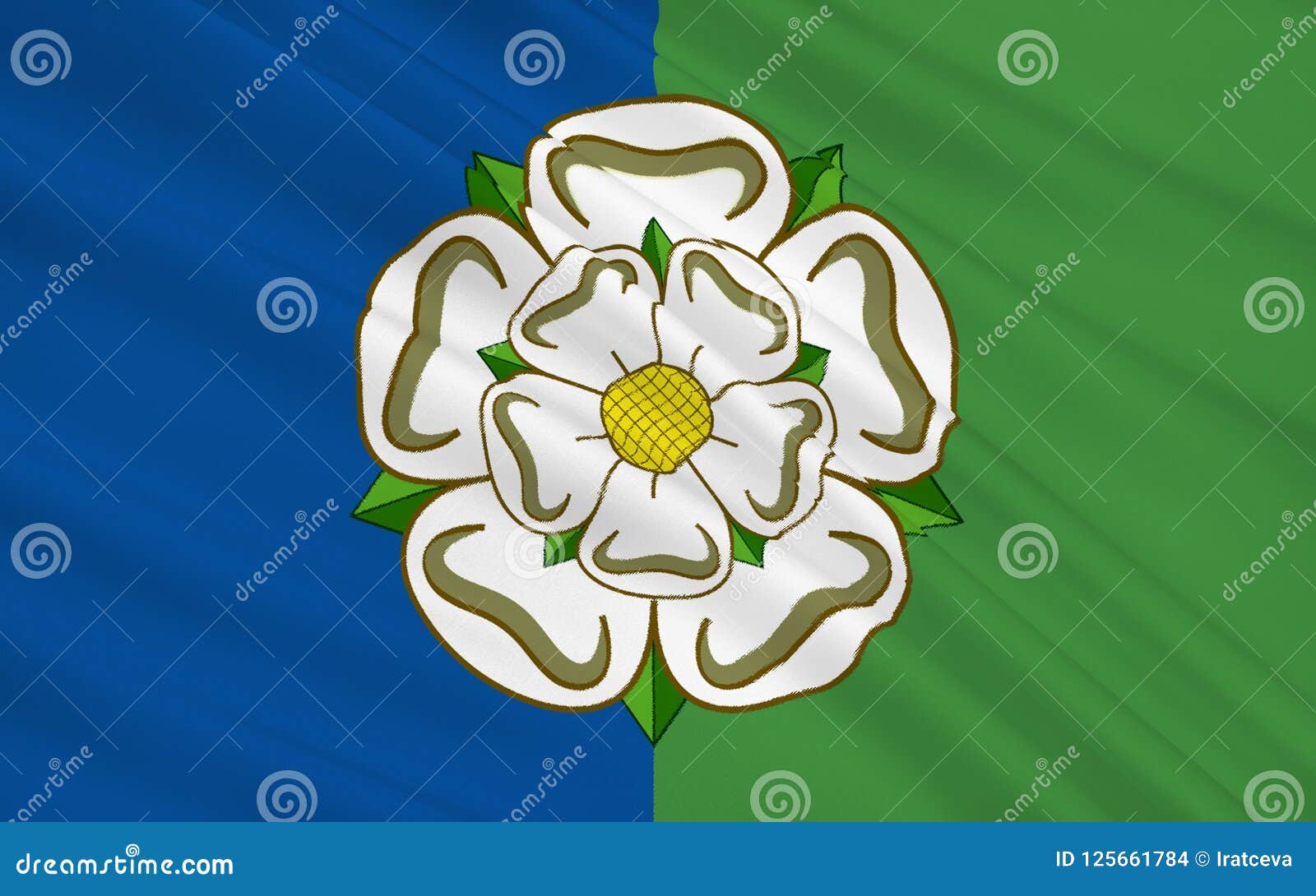 Visually captivating, the flag of East Riding of Yorkshire boasts a distinctive design that captures the essence of the land and its people. The flag features a vertical bicolor of blue and gold, a color palette that evokes images of rolling hills and expansive skies. Central to this design is the prominent emblem: a stylised depiction of a white rose—the floral symbol of Yorkshire.